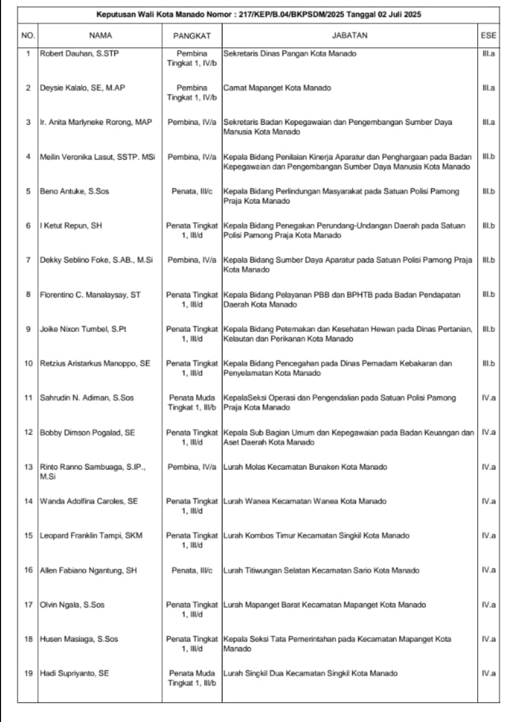 Manado, Sumber Berita ID – Pemerintah Kota Manado dibawah kepemimpinan Walikota Andrei Angouw (AA) dan Wakil Walikota dr. Richard Sualang (RS) kembali melakukan rolling pejabat.