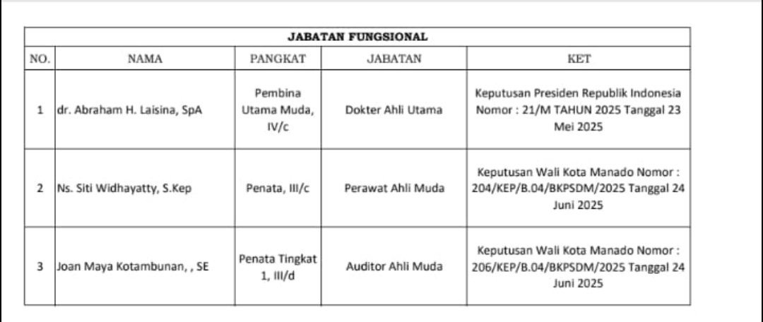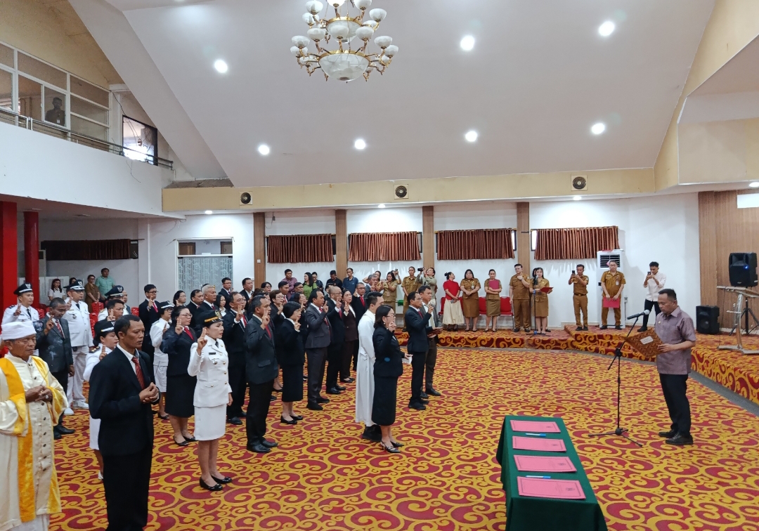 Pengambilan Sumpah Janji dan Pelantikan Jabatan Administrator, Jabatan Pengawas dan Jabatan Fungsional di Lingkungan Pemerintah Kota Manado yang dilangsungkan di aula kantor BKPSDM Kota Manado, Selasa (15/07/2025).